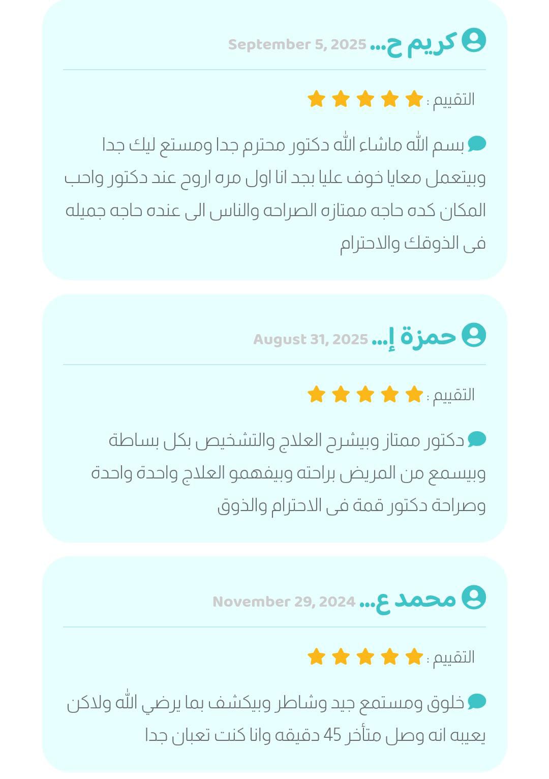 آراء وتعليقات موثوقة لمرضى شاركوا رحلتهم داخل العيادة.